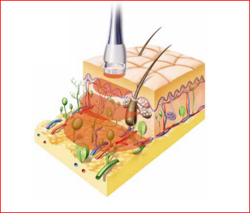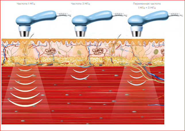 Ультразвук це механічна хвиля, народжена коливаннями кристалу, який знаходиться всередині аплікатора. Коливання передаються на поверхню тіла і далі вглиб тканин за допомогою контактного засобу. Основний ефект це прогрів тканин та глибокий мікромасаж.