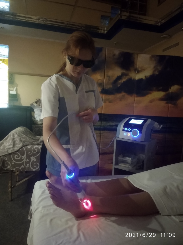 Перед процедурою фізіотерапевт та пацієнт одягають захисні окуляри. Далі фізіотерапевт чинить вплив на проблемні ділянки. Процедура неболюча. Пацієнт може відчувати тепло. Візуально після процедури залишається невелике почервоніння (пов’язане з розширенням судин). Ми використовуємо апарати як у окремо, так і в комплексі з іншими апаратами, наприклад з електротерпією та ультразвуком. Для цього ми також використовуємо систему передової технології Апарат BTL-4000 Premium, що містить комбінацію електротерапії та ультразвуку. Апарат має надзвичайні характеристики , володіє великим спектром терапевтичних можливостей. Містить бази даних пацієнтів та їх протоколів лікування. Апарат являє собою двоканальну систему і пропонує великий вибір струмів, які доступні на сьогодні і являється потужним методом лікування деформуючого остеоартрозу та інших захворювань суглобів, який швидко та надійно вже себе проявив.